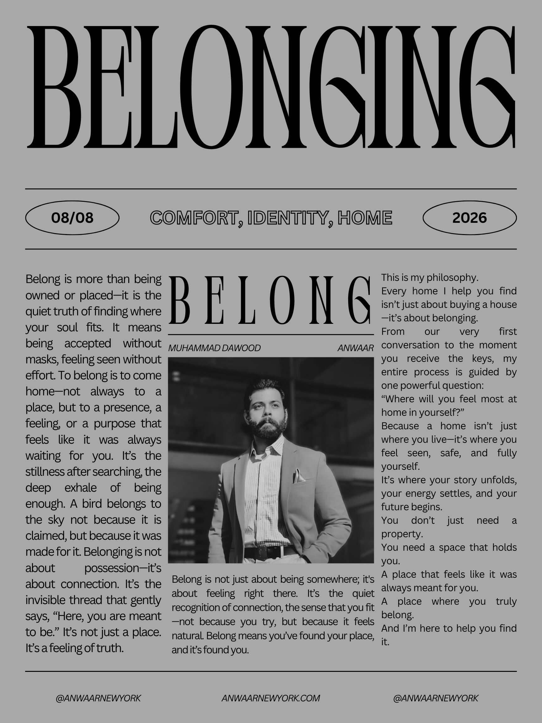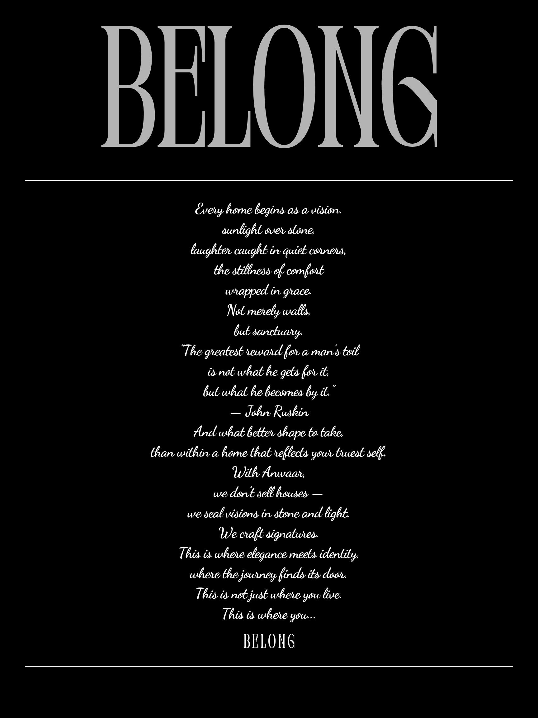 This insight stayed with me.So I researched. I studied human behavior, design, emotional triggers, memory, and space. I took a full year to analyze what makes people feel truly at ease, truly connected, and what drives them to call something their own.Eventually, all of this led me to one powerful, grounding word:BELONG.It’s not a slogan. It’s a human truth.